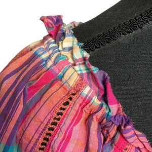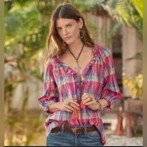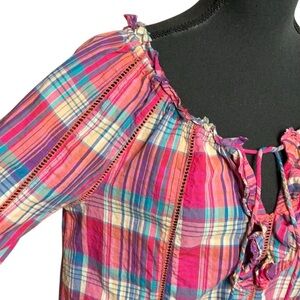 Sundance Plaid Peasant Blouse with Tassel Tie Front