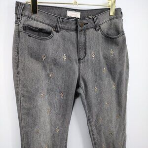 Sundance Primrose Gray Skinny Jeans Embellished Sequins Size 31 Boho Tapered