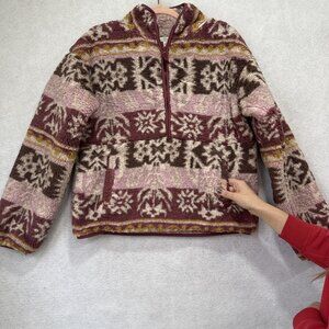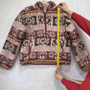 Sundance Pullover Womens Small Pink Brown Sherpa Fleece Half Zip Fair Isle