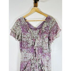 Sundance Purple Watercolor Printed Short Sleeve Silk Chiffon Dress Size 8 EUC
