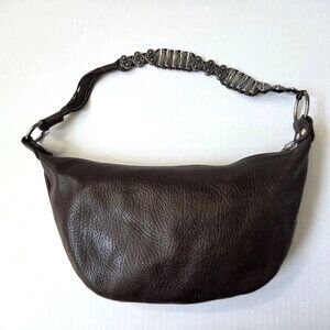 Sundance Purse Brown Pebbled Leather Hobo Metal Strap Accents Boho Shoulder Bag
