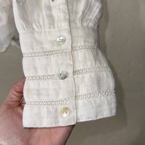 Sundance Reach For Beauty Top in the color marshmallow. Size medium. Ladder lace, allover textured embroidery and scalloped hem.