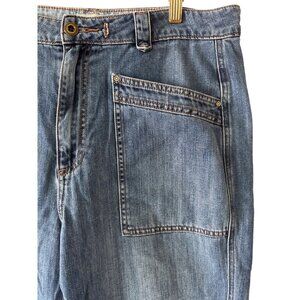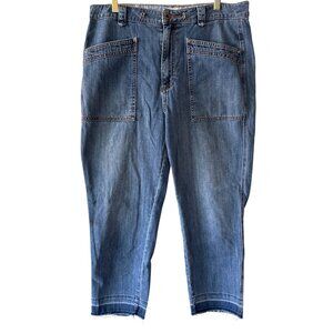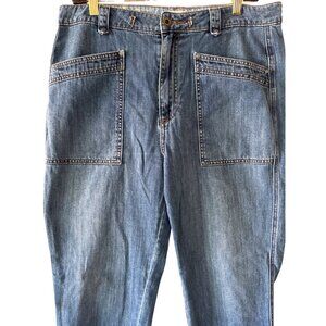 Sundance Roadside Jeans Size 10 Mid Wash High Waist Raw Hem Patch Pockets