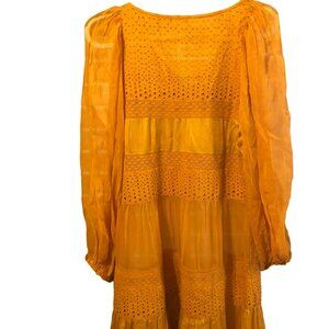 Sundance Romance Embroidered Lace Sheer Dress V Neck Rust Sz Small Boho Hippie
