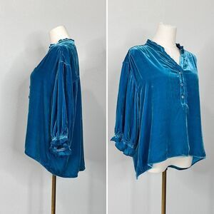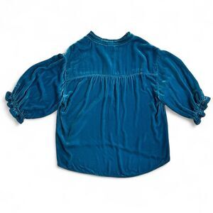 Sundance Romance Imagined Velvet Blouse Top Sz PM ( Medium Petite ) Peacock Teal Blue