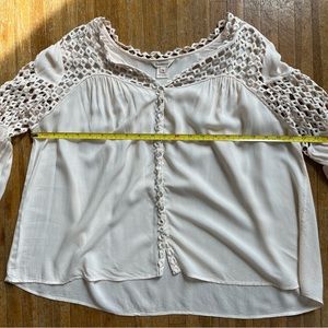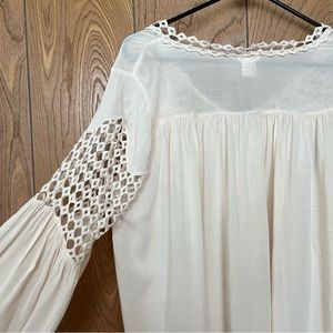 Sundance Romantic Boho Long Sleeve Button Front Open Knit Details Peasant Blouse