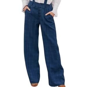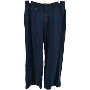 Sundance Rosaville Pants Linen Plaid Button Relaxed Pockets Midnight 6P NWOT