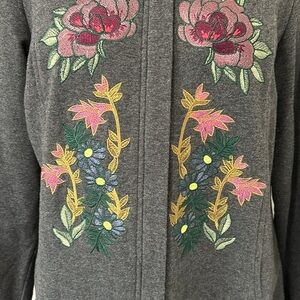Sundance Royal Ambrosia Jacket Gray Floral Embroidered Full Zip Sz Petite Large