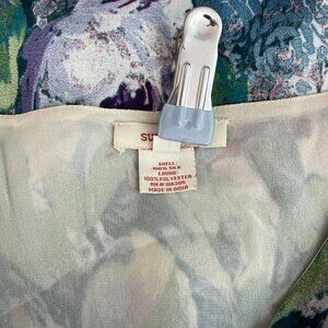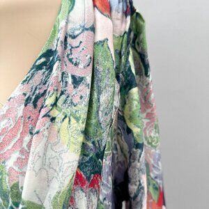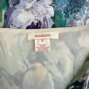 Sundance Samantha Silk Long Sleeve Boho Floral Pleated V-Neck Empire Top Women S
