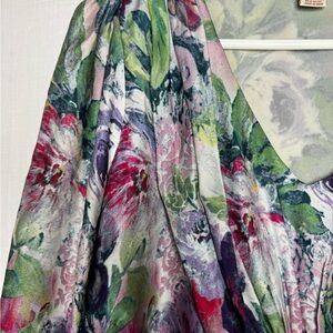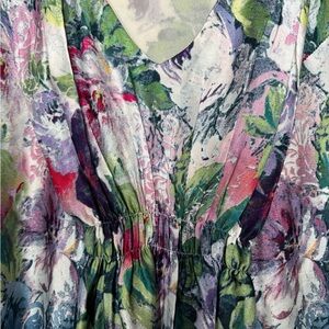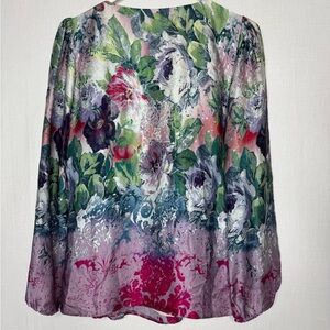 Sundance Samantha Sugarplum Garden Floral Blouse Silk V Neck Pintuck Watercolor Forest Fairy Boho Euro Summer Hamptons