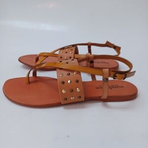 Sundance Sandals Caramel Brown Leather Studs Flat Strappy NEW Womens 6