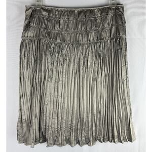 Sundance Satin Pleated Skirt Size 8 Silver Drop Waist Tulip Knee Length