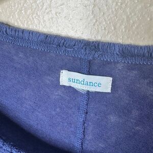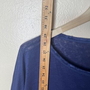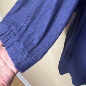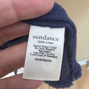Sundance Shirt Women's Large Navy Frayed Neck Linen 3/4 Sleeve Oversized Boho