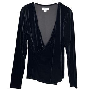 Item: Womens long sleeve velvet wrap-front deep V-neck shirt/blouse