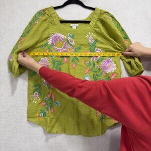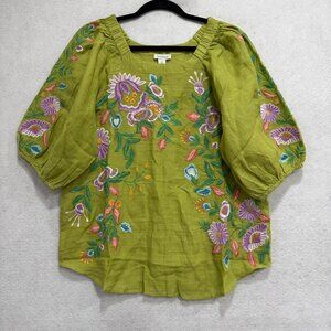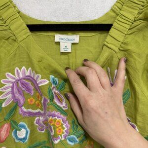 Sundance Shirt Womens Medium Green Embroidered Linen Blend Boho Peasant Top