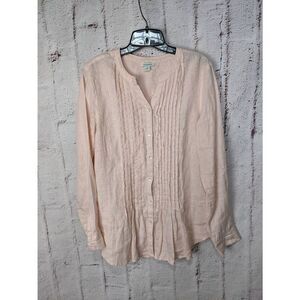 Sundance Shirt 100% Linen Size S Small Pintuck Button up Shirt Relaxed Fit Smooth Pink