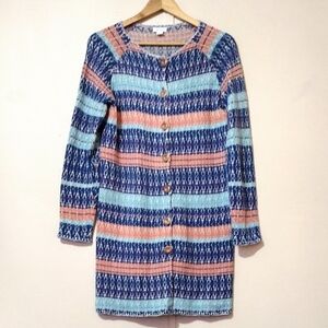 Elevate your style with this beautiful Sundance shoreline button down cardigan.Perfect for any occasion. The geometric pattern and tight-knit fabric make it a perfect fit for a bohemian-themed wardrobe. The long sleeves and classic sleeve type provide comfort and versatility, making it suitable for travel, casual outings, and workwear.