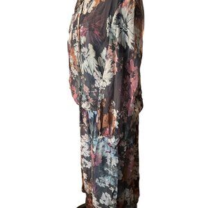 Sundance Silk Floral Maxi Dress with slip Romantic Boho Chic Long Sleeve Peasant