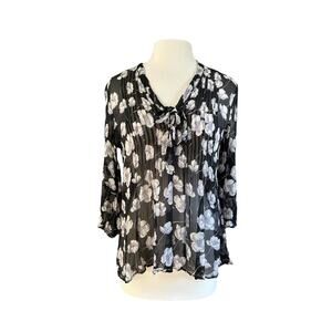 Sundance Silk Pleated Quarter Sleeve Lightweight Sheer Floral Blouse Size Medium