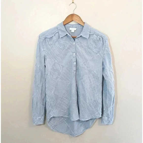 Sundance Simply Shannon Blue Patchwork 100% Cotton Blouse Sz PXS Petite XS 98398