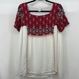 Sundance Size M Embroidered Boho Top Multicolor Red Flowy Square Neckline Blouse