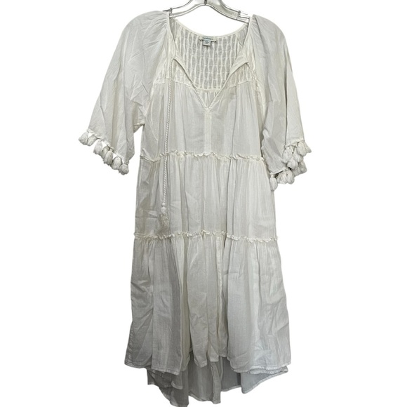 Sundance Small 💯 Cotton White Bohemian Cottagecore Midi Tassel Dress R1