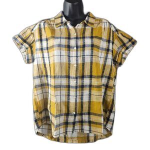 Sundance Small Textured Mustard Plaid Cotton Roll Sleeve Button Up