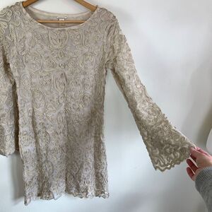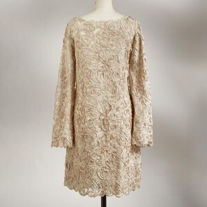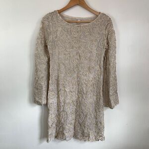 Sundance Soutache Dress Tan Cream Size XS Petite Lace Ribbon Wedding Guest Party