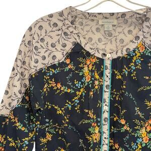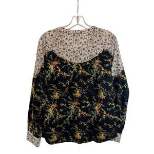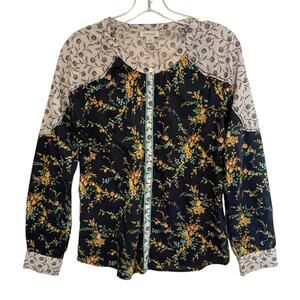 Sundance Stories To Be Told Top Womens Small Navy Floral Contrasting Trim Boho