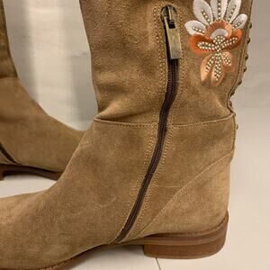Sundance Suede Embroidered Boots Floral Over the Knee Western Country Cowgirl Studded Boho 70s Retro Tan Brown Y2K Fall Winter Spring Fairy Ren Fair Cottagecore