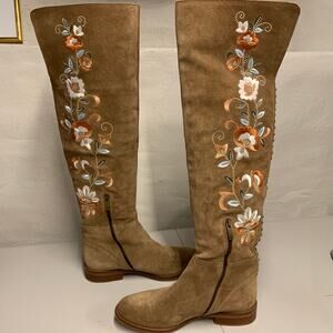 Sundance Suede Embroidered Boots Floral Over the Knee Western Country Cowgirl