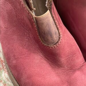 Stylish red suede ankle boots. Unique perforated design. Comfortable and chic. Yes, they are pre loved with some markings that don’t affect the quality or bootie!