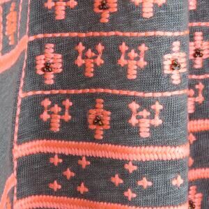 Sundance Sumira Halter Top. Charcoal Gray Tank Top with Pink Tribal Boho Embroidered Pattern.