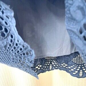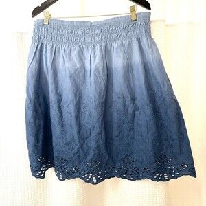 Light as a cloud, our cotton skirt in a subtle spatter print, with ombré coloring to a deeper blue, eyeletscalloped hem. Smocked waist, side zip. Hand wash. Lined Imported..