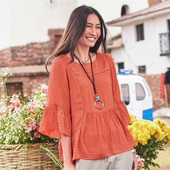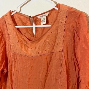 Sundance Susannah Blouse Size Medium Orange Ruffle Swiss Dot Eyelet