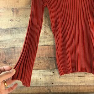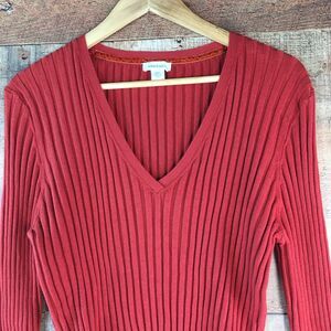 Sundance Sweater Red Orange V Neck Ribbed Knit Organic Cotton Blend Women’s XXL