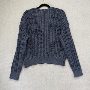 Sundance Sweater Womens Large Blue Knit Pointelle Cardigan Button Front V Neck