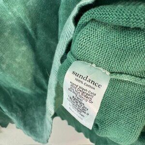 Sundance Sweater Womens Large Green Sheer Knit Split V Neck Contrast Seams Boho