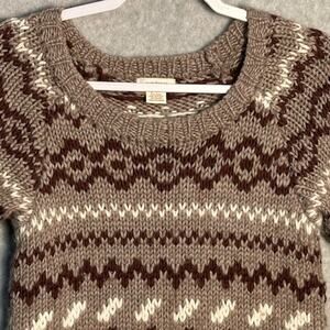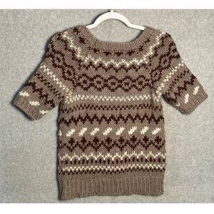 Sundance Sz S Wool Blend Crochet Knit Fair Isle Short Sleeve Sweater Neutral