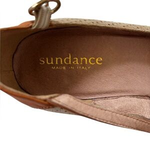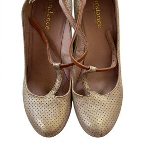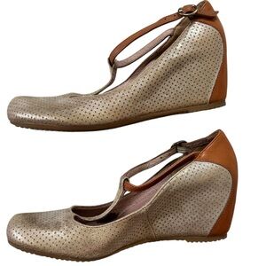 Sundance T-Strap Maryjane Wedge metallic bronze nubuck and cognac leather 39