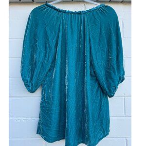 Sundance Teal Velvet Boho Peasant Blouse | Rayon Silk Blend | Size Small