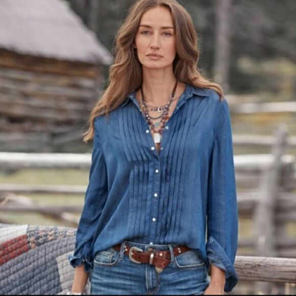 Sundance Tessa Chambray Pleated Button Down Shirt