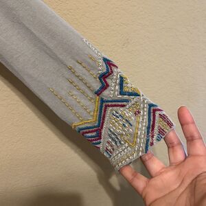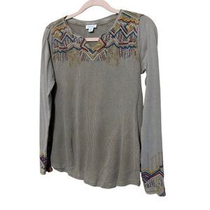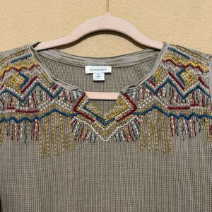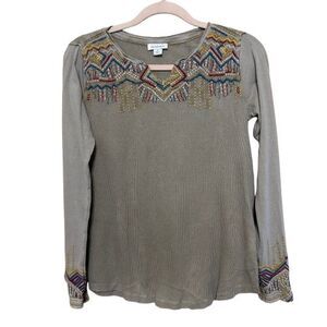 Sundance Thermal Top Womens Small Tan Embroidered Geometric Southwestern Boho