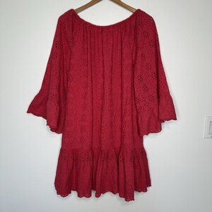 Sundance Tiered Eyelet Dress Size XL Pink Cotton Beach