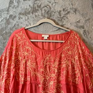 Sundance Top Pink Embroidered Kaftan Poncho Sheer Boho Peasant Women’s Medium