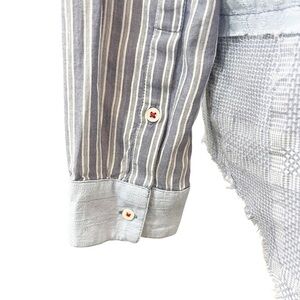 Sundance Top Size XS Blue Patchwork Stripe Long Sleeve Button Down High Low Hem