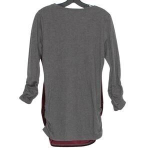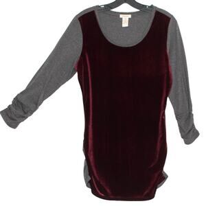 Features: velour, 3/4 sleeve, mixed media, scoop neck, ruched sleeves
