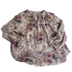 Sundance Top Womens Large Blouse 100% Silk Floral Beaded Boho Paisley Sheer