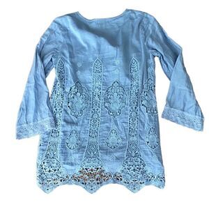 Sundance Tunic Blouse Embroidered Lace Silk Blend PS Blue