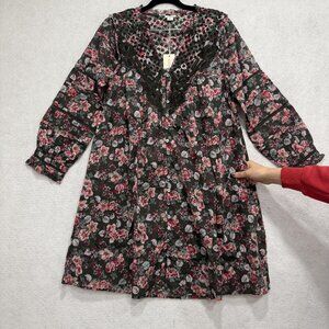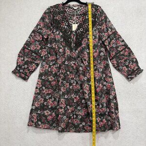 Sundance Tunic Dress Womens Small Gray Pink Floral Embroidered Lace Eyelet